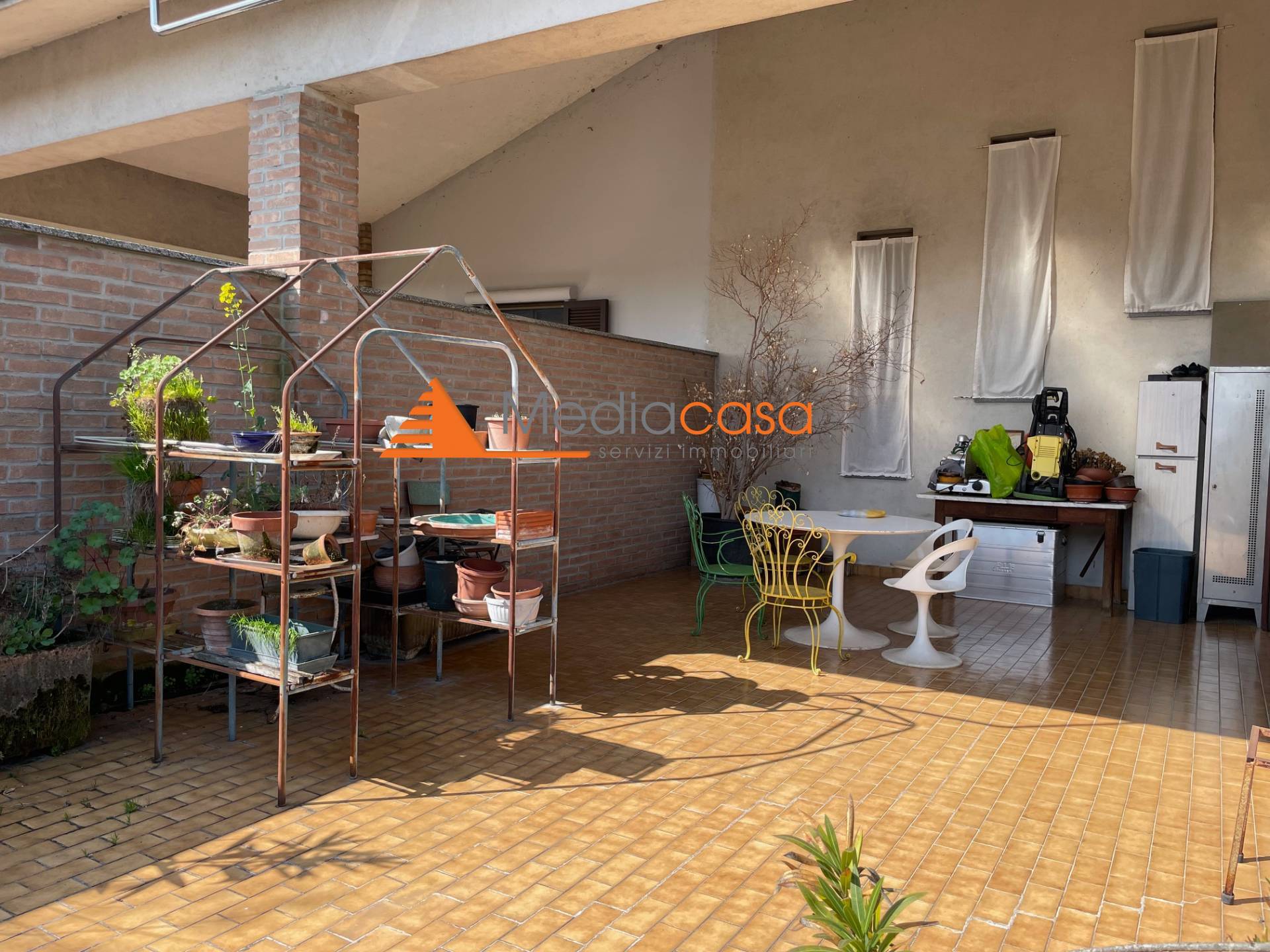 Fiore all'occhiello di questa soluzione, unica nel suo genere, due terrazzi di 50 metri ciascuno: uno coperto (loggiato) con accesso dal soggiorno ed uno scoperto con accesso dalla cucina.