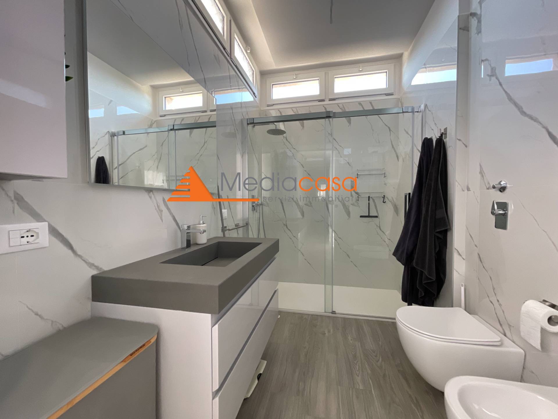 L'immobile è dotato di riscaldamento a pavimento alimentato da una nuova caldaia a condensazione, impianto di aria condizionata canalizzata con inverter, ricircolo dell'aria, tapparelle motorizzate, predisposizione per l'impianto d' allarme, infissi nuovi in PVC con doppio vetro.