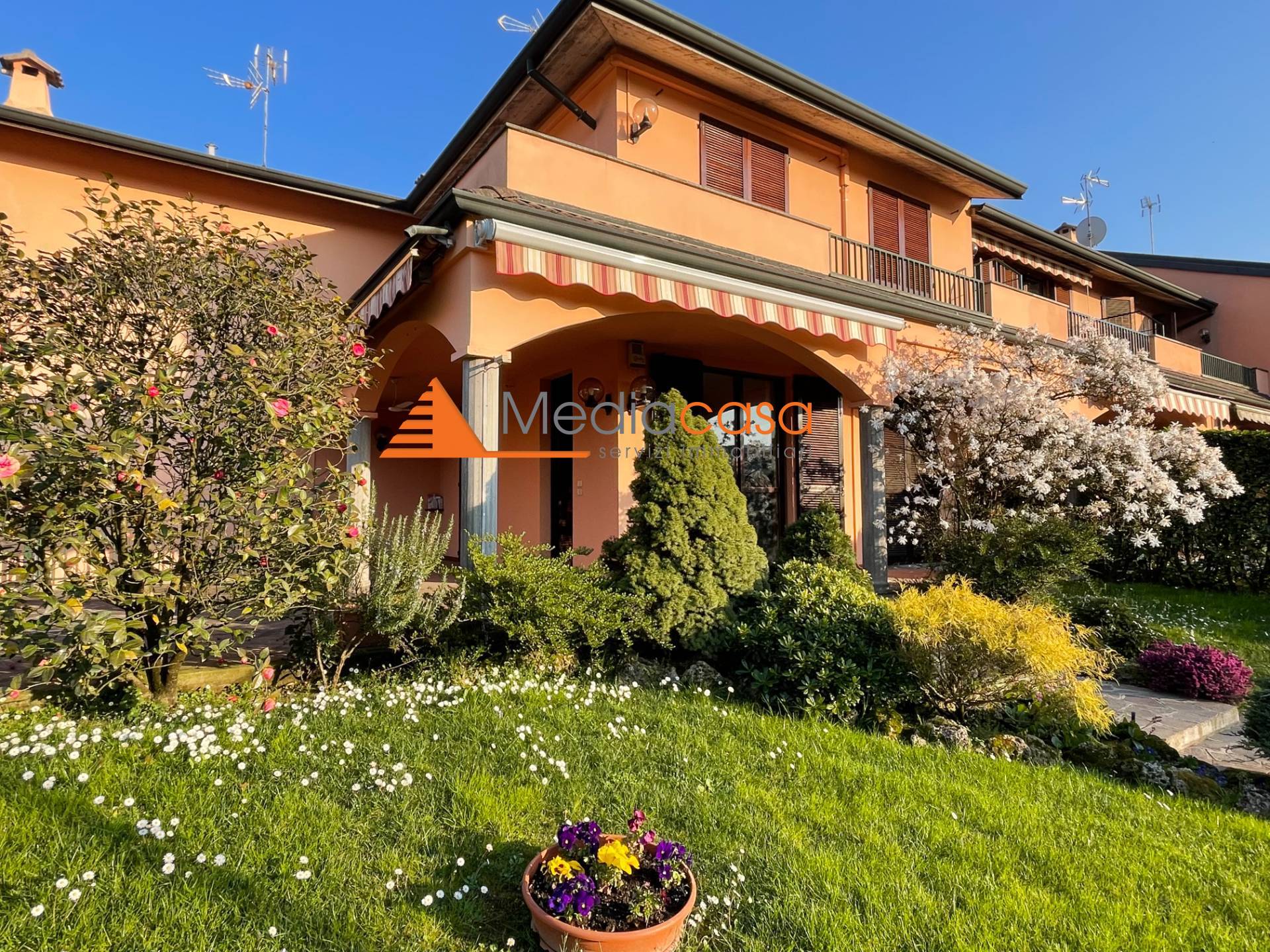 Bellinzago L.do in bel contesto residenziale con affaccio su bellissimo parco comunale, proponiamo in Vendita un' ampia Villa a schiera disposta su 2 livelli oltre a piano seminterrato così composta: