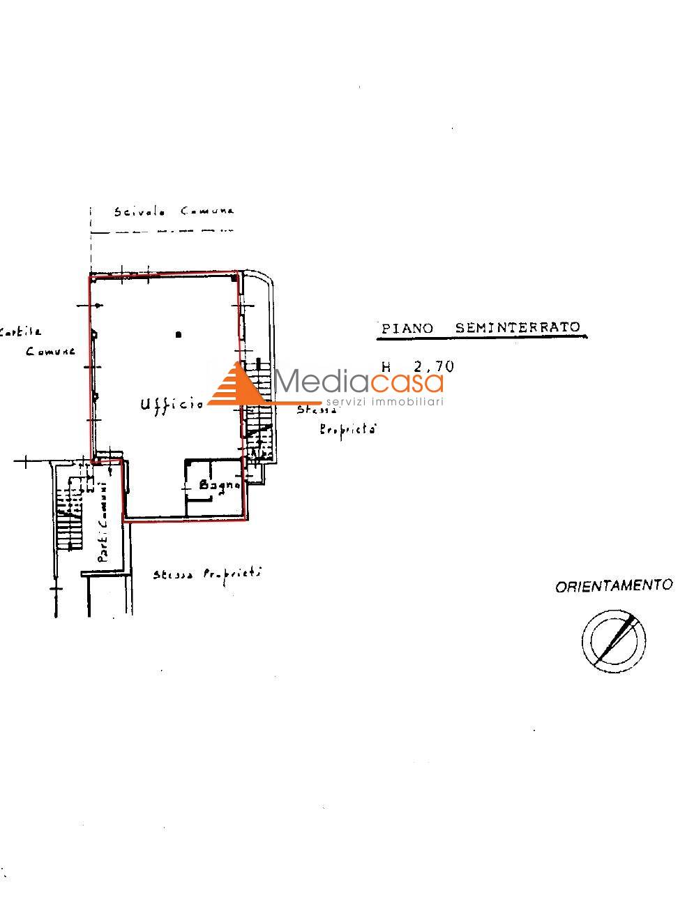 L'immobile è suddiviso in n. 2 vani oltre a disimpegno, bagno e sottoscala con lavandino; possibilità di creare un unico ambiente open space.